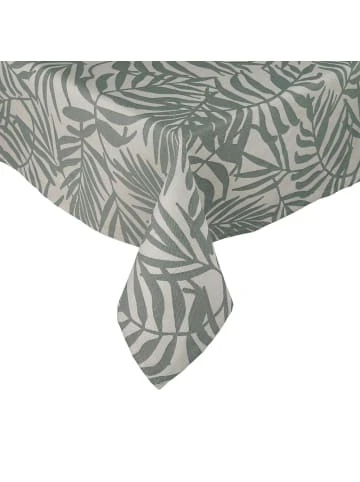 Exotische Palmblätter schmücken die Secret Island Tischdecke 300 x 160 cm aus 100 % Baumwolle. Ihre neutrale Farbgebung in Grün und der moderne Look machen diese Tischwäsche besonders kombistark und alltagstauglich. So passt die Tischdecke ebenso zum sommerlichen Abendessen auf Balkon oder Terrasse wie zum festlichen Sonntagsfrühstück mit Gästen. Tischdecke in weiteren Größen sowie passender Tischläufer und passende Stoffserviette erhältlich.