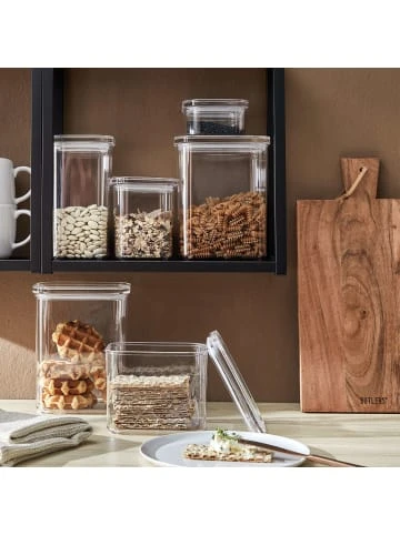 Zielsicher im Schrank zu den Rosinen greifen oder mit einem Griff aus der Schublade die Haferflocken holen: Beim Backen, Kochen und Zubereiten haben Sie alles perfekt im Blick mit der transparenten Clearance Vorratsdose. Deckel und Gefäß aus Acryl zeigen direkt, was drinsteckt, und die Silikondichtung am Deckel sorgt dafür, dass alles frisch bleibt und nichts daneben geht. In unterschiedlichen Varianten erhältlich, stapelbar und ideal für die aufgeräumte Küche.