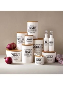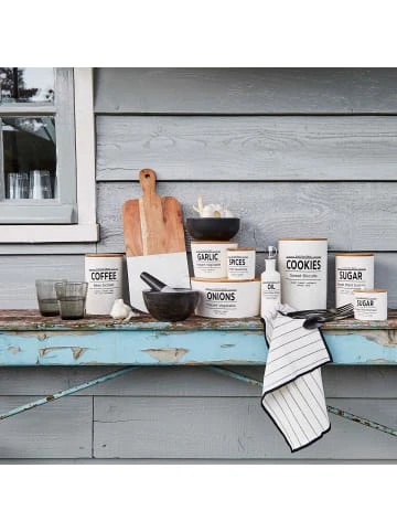 Die Karlton Bros. Vorratsdose Sugar im skandinavischen Landhausstil sieht nicht nur schön aus, sondern ermöglicht auch eine ideale Lagerung Ihres Zuckers. Der große Vorratsbehälter bietet mit einer Füllmenge von 1,1 Litern ausreichend Platz für Ihren Haushaltszucker. Zudem ist die Zuckerdose mit Bambusdeckel und Silikondichtung bestens geeignet um Ihren Zucker vor Feuchtigkeit zu schützen, sodass er möglichst lange seine Qualität beibehält ohne zu verklumpen. Ob zum Süßen oder Backen, der runde Zuckerbehälter ist immer griffbereit und macht auch auf dem Regal oder im Vorratsschrank eine gute Figur. Um das Bild perfekt zu machen, gibt es noch weitere Vorratsbehälter im skandinavischen Design aus der Karlton Bros. Serie für Ihre Küche.
