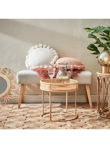 Beistelltisch im Nature Look – diese Stelle ist in Ihrem Wohnzimmer oder Schlafzimmer noch nicht besetzt? Dafür bewirbt sich jetzt der handgeflochtene Boho Lounge Beistelltisch. Mit Natur-Rattan in filigraner Webtechnik bringt er überzeugende Eigenschaften mit, und auch leichte Unregelmäßigkeiten in der Farbgebung gehören zu seinen authentischen Stärken. Also, stellen Sie diesen individuellen Beistelltisch ein? – Natur-Rattan: mit authentischem Charme