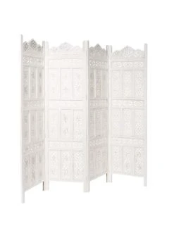 Als stamme er aus einer spanischen Finca, einer italienischen Villa oder einer portugiesischen Posada: Unser weißer Estella-Paravent mit femininen Ornamenten versehen, präsentiert sich charmant nostalgisch und aufwändig gearbeitet. Mit Liebe für das Detail. Denn er wurde von Hand gefertigt und bemalt. Ob als Raumteiler, als Sichtschutz oder Dekoelement: Der Paravent im Vintage-Look ist vielseitig nutzbar und weist deutliche Gebrauchsspuren auf. – Ein Paravent wie aus einer spanischen Finca – Nostalgischer, aufwändig gearbeiteter Raumtrenner – Auch als Sichtschutz oder Dekoelement nutzbar – Von Hand gefertigt Vintage-Look Gebrauchsspuren – Mangoholz weiß Breite 203 x Tiefe 2 x Höhe 182 cm