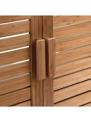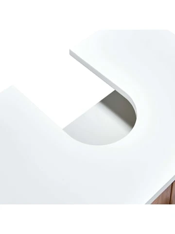 Helle Farben und klare Linien mit praktischer Aufbewahrung in moderner Optik – dieser ordnungsliebende Waschbeckenunterschrank versteht sich direkt mit Ihren Wohnideen und den Anforderungen in Ihrem Badezimmer. Durch die zeitlose Farbkombination aus natur und weiß wirkt er zudem elegant und bietet auf zwei Ebenen optimalen Platz für Ihre Badutensilien. Für ein einfaches Öffnen und Schließen sorgt der Magnetverschluss an den Türen. Durch die Verarbeitung von Bambus, einem schnell nachwachsenden und extrem widerstandsfähigen Rohstoff, punkten Sie zudem in Sachen Nachhaltigkeit. Dies kommt nicht nur der Umwelt zugute, sondern zeigt sich auch in der Langlebigkeit unserer Möbel. Weitere Produkte der Serie erhältlich. – Bambus Waschbeckenunterschrank in hellem Weiß – Klassisches Design und unkomplizierter Gebrauch – Länge 60 x Breite 38 x Höhe 61 5cm Unterstau 8cm – Regalbodenabstand 23 5 cm Ausschnitt 16 x 25 cm – Aus Bambus MDF