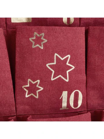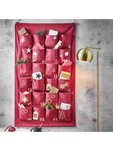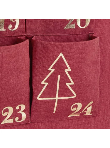In Sachen Verpackung ist Umdenken angesagt, und da bietet sich der Santa is Coming Adventskalender mit Tassel in Rot-Gold dekorativ an: Alle Jahren wieder lassen sich in seinen Taschen kleine Überraschungen verstecken, z. B. DIY-Geschenke oder andere mit Liebe ausgesuchte Nettigkeiten. Aus Baumwolle, zum Aufhängen.