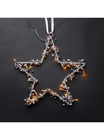 Winterzauber und Romantik leuchten Ihnen beim Star Lights LED-Stern mit silbernen und weißen Perlen entgegen. Tipp: Bei Dunkelheit als Fensterschmuck besonders effektvoll.