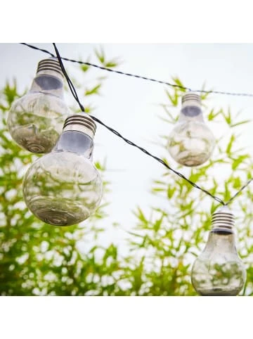 Die Glühbirne feiert Ihr Comeback als dezent schimmernde Sunlight Glühbirnenlichterkette Solar. Sie dekorieren die Lichterkette z.B. als stimmungsvolle Deko für Grillabende oder Gartenpartys. In Sträuchern oder Bäumen sorgt sie am Abend für Atmosphäre. Oder Sie verschönern Ihren Balkon, indem Sie die Lichterkette am Geländer oder auf dem gedeckten Tisch platzieren. In weiteren Variante erhältlich